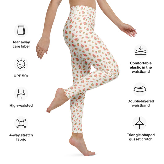 Tiny Blooms : Strawberries : Adult Yoga Leggings