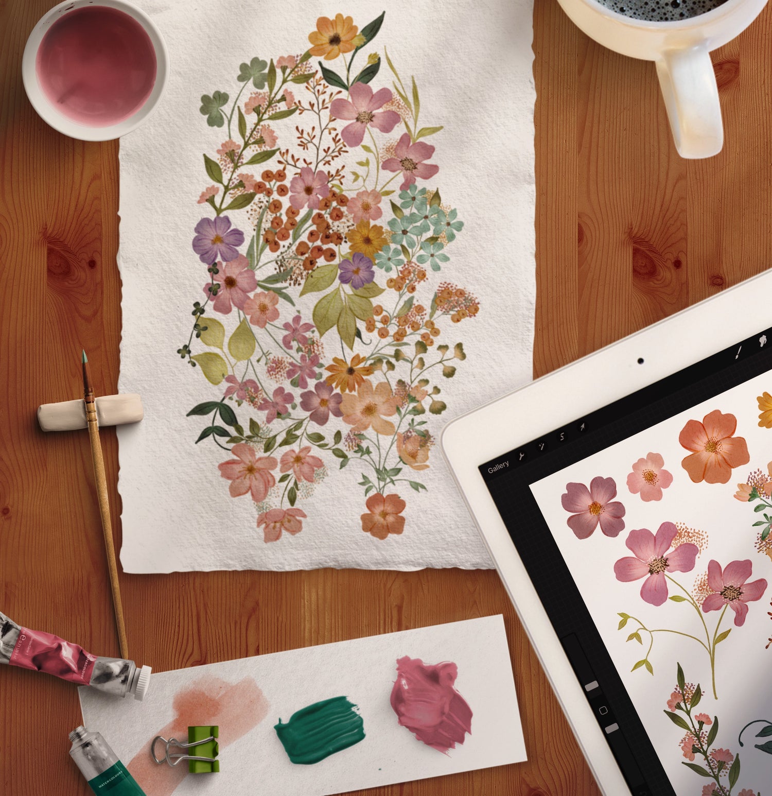 Paint to Pixel is a step-by-step course that shows you how to take your watercolor, sketch, or hand-painted elements, prep them in Photoshop, and bring them into Procreate to enhance and digitize your artwork. Whether you want to create stickers, social media graphics, printables, or just build your own digital library, this course is your roadmap from brush to screen.