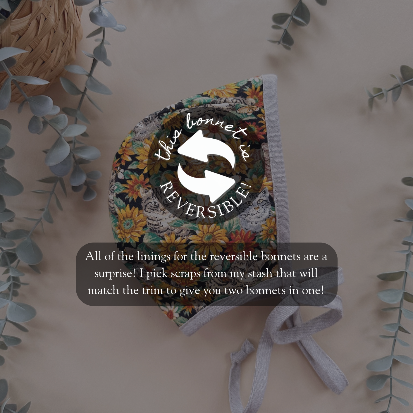 • Fabric Content: These bonnets were made from a vintage floral fabric, 100% cotton