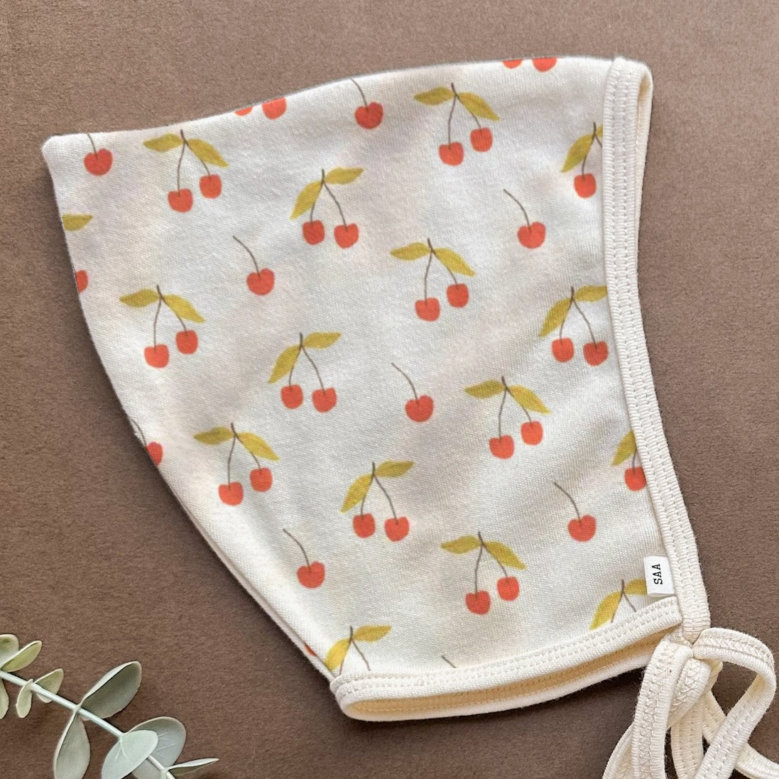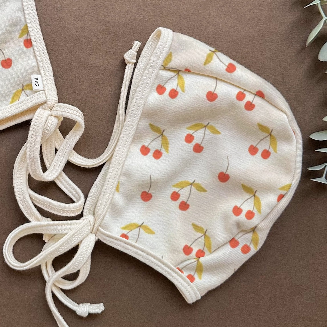 A cherry-printed baby bonnet is a sweet and playful accessory, perfect for adding a vintage-inspired touch to any little one’s wardrobe. Popular searches include cherry baby bonnet, fruit print baby bonnet, retro baby bonnet, and summer baby hat. Featuring adorable cherry motifs in bright red and soft green on a neutral or pastel background, this bonnet brings a fun, nostalgic feel to any outfit. Parents looking for organic cotton baby bonnets, linen baby bonnets, or handmade fruit-themed baby hats love this charming design for its timeless appeal. Whether paired with a ruffled romper, a gingham dress, or denim overalls, a cherry-printed bonnet adds a whimsical and cheerful vibe. Ideal for summer picnics, spring outings, or vintage-inspired photoshoots, this bonnet is a must-have for those who love classic, fruity prints with a touch of sweetness.