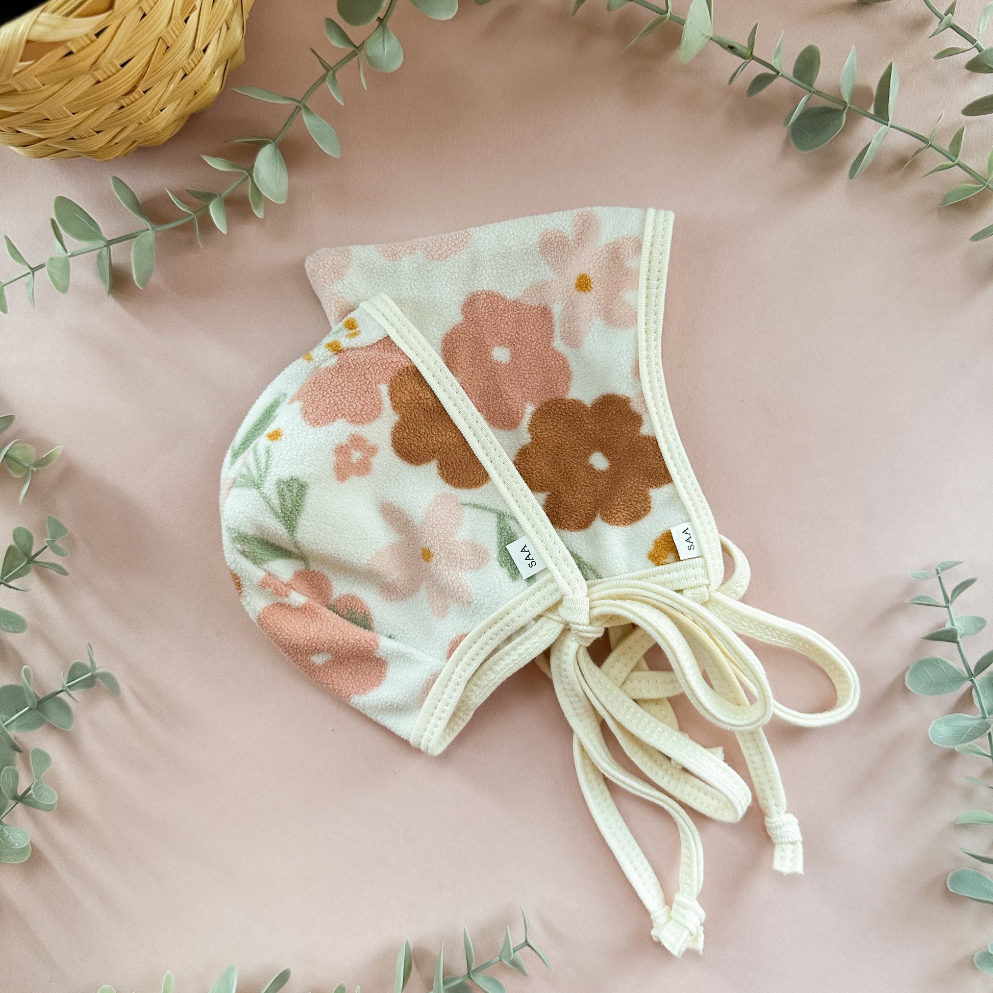 This bonnet must be hand wash, hung to dry. Cool iron, if needed.