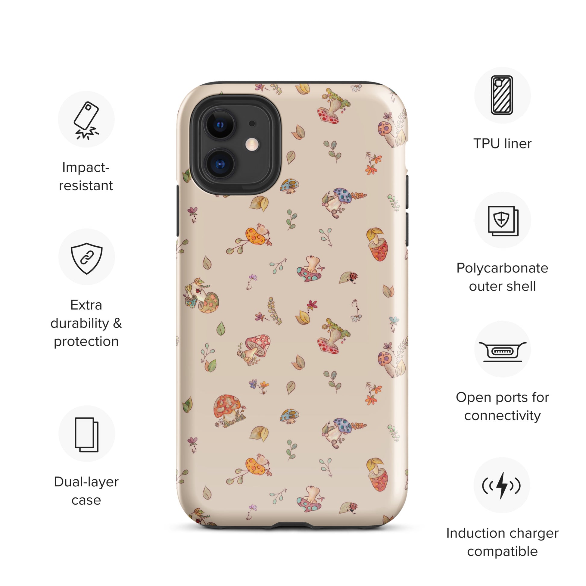 Protect your phone with style using a durable, dual-layered case. The outer shell is made of impact-resistant polycarbonate, while the inner lining sports TPU lining for maximum impact absorption. Keep your phone fashionable and safe all year round!