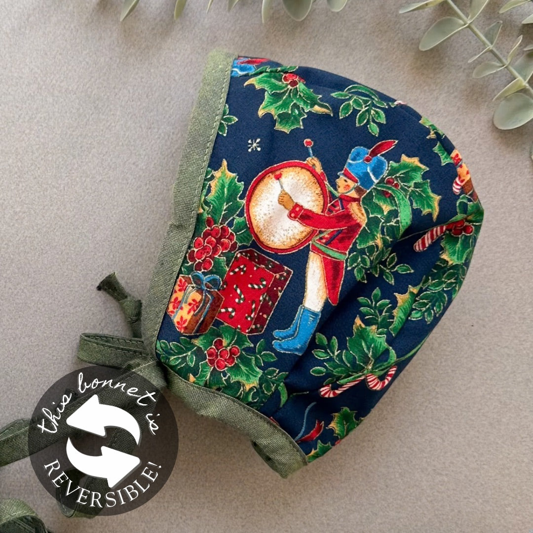 Please keep in mind that the bonnet pictured may not be the exact bonnet you receive. The print, embroidery pattern, and/or lace may differ depending on which part of the textile the bonnet was cut from. Also, colors can change on different screens. I photograph the bonnets in natural light to keep the colors as accurate as possible.