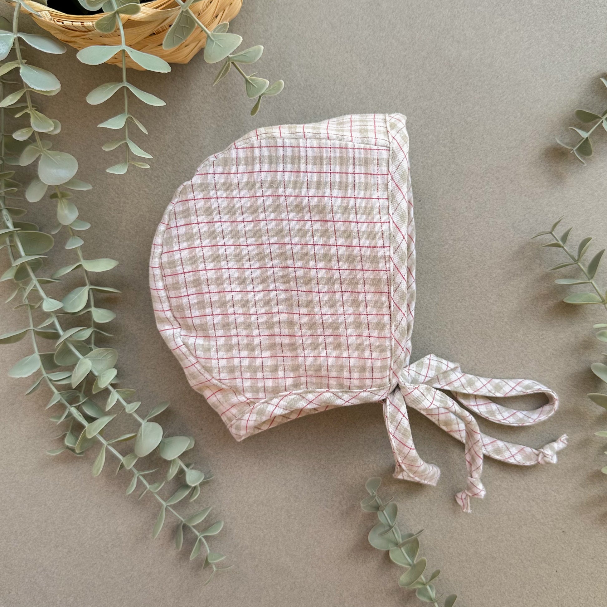 This bonnet must be hand washed and hung to dry. Cool iron, if needed.