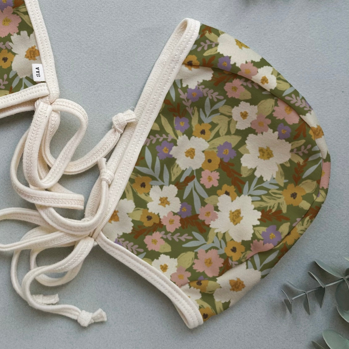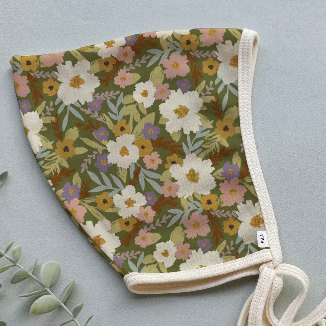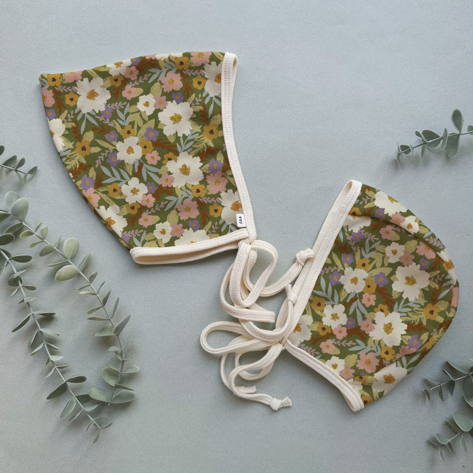 Please keep in mind that the bonnet pictured may not be the exact bonnet you receive. The print, embroidery pattern, and or lace may differ, depending on what part of the textile the bonnet was cut from. Also, colors can change on different screens, I try to photograph the bonnets in natural light to keep the colors as true as possible.