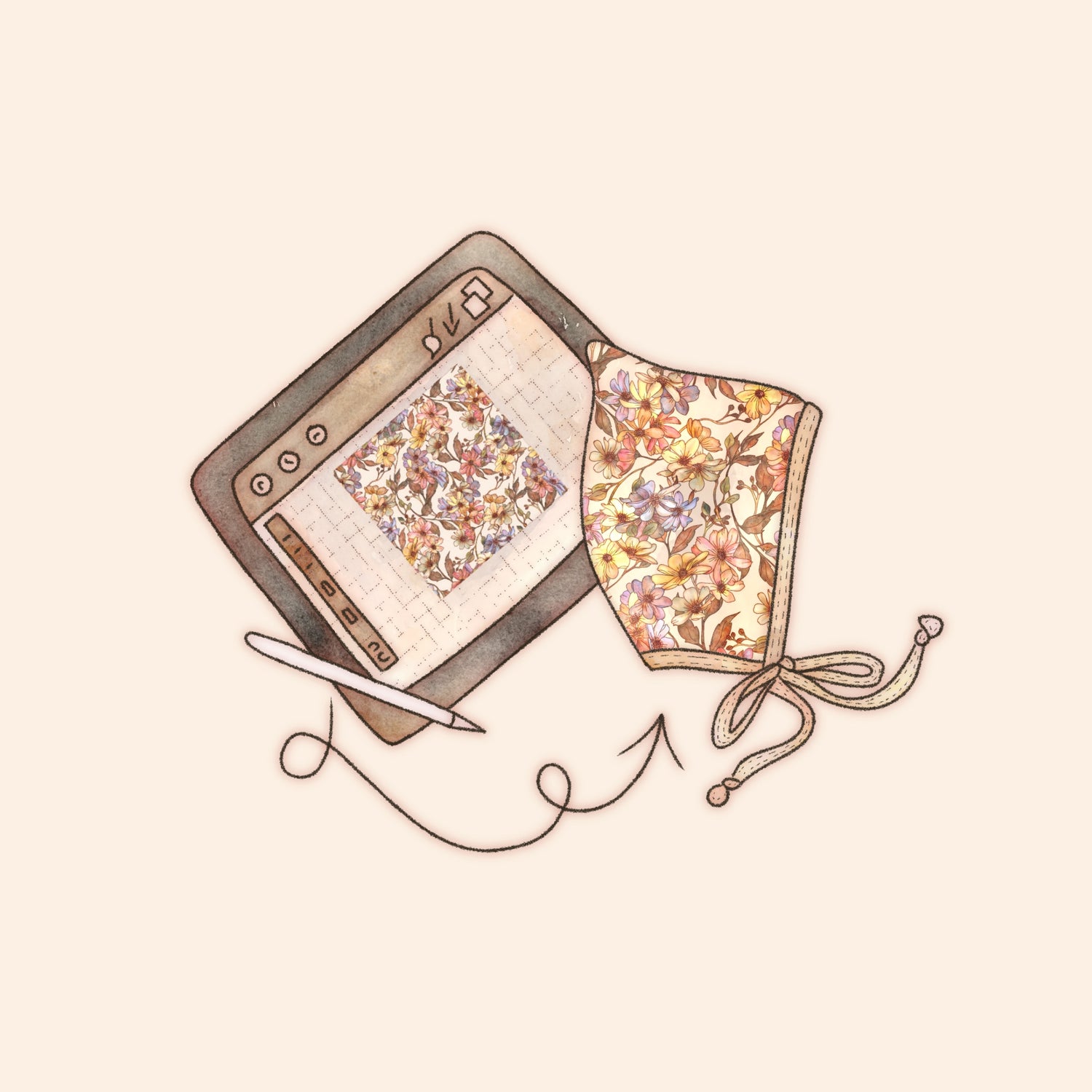 Carrie, after painting for over 10 years, has fallen in love with pattern design. This exclusive design was eco -printed on 100% cotton to make this bonnet.