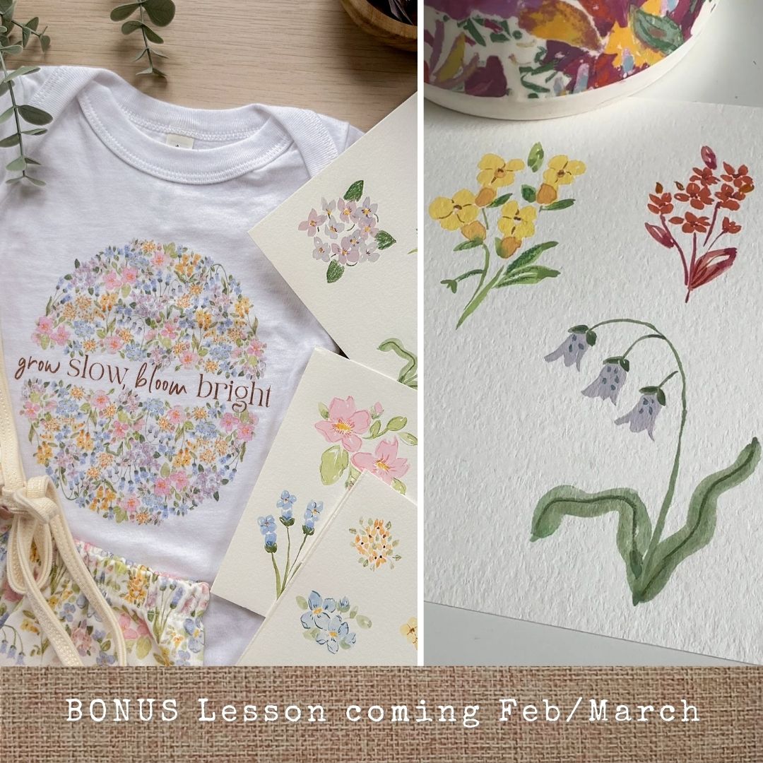 In mid-February to mid-March, I’ll be adding a bonus lesson focused on taking your digital assets into Photoshop to create even more finished work, from repeating patterns to print-on-demand designs for wallpaper, fabric, and merchandise. I’m also hoping to host a live painting session so we can paint together, apply the lessons in real time, and grow as a creative community. This course is about learning a new skill, slowing down, and giving yourself tools you’ll use long after the final lesson ends.