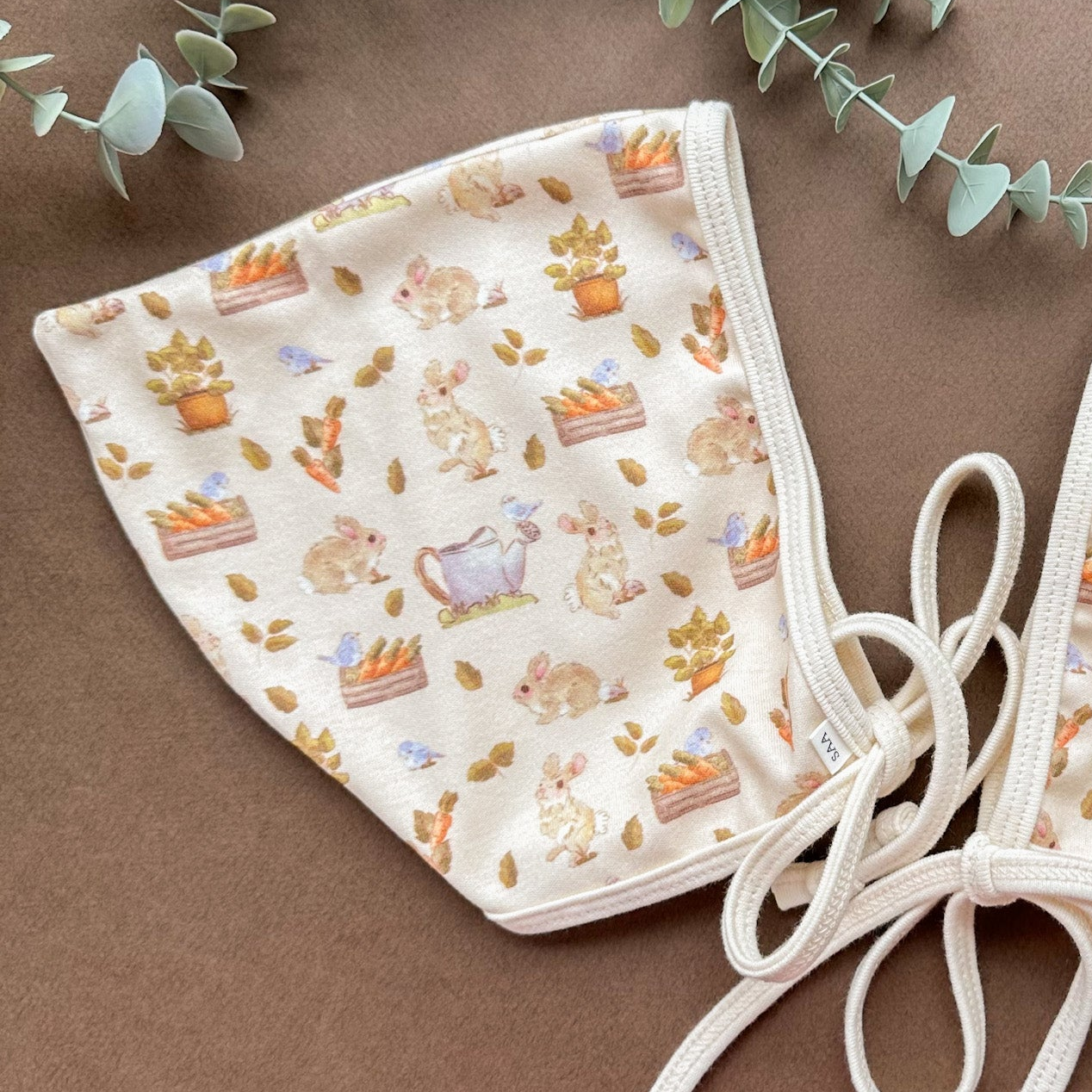 This is a single layer knit bonnet. It's made from 100% organic stretch cotton & printed with chemical-free, Oeko-Tex 100 certified, and biodegradable inks