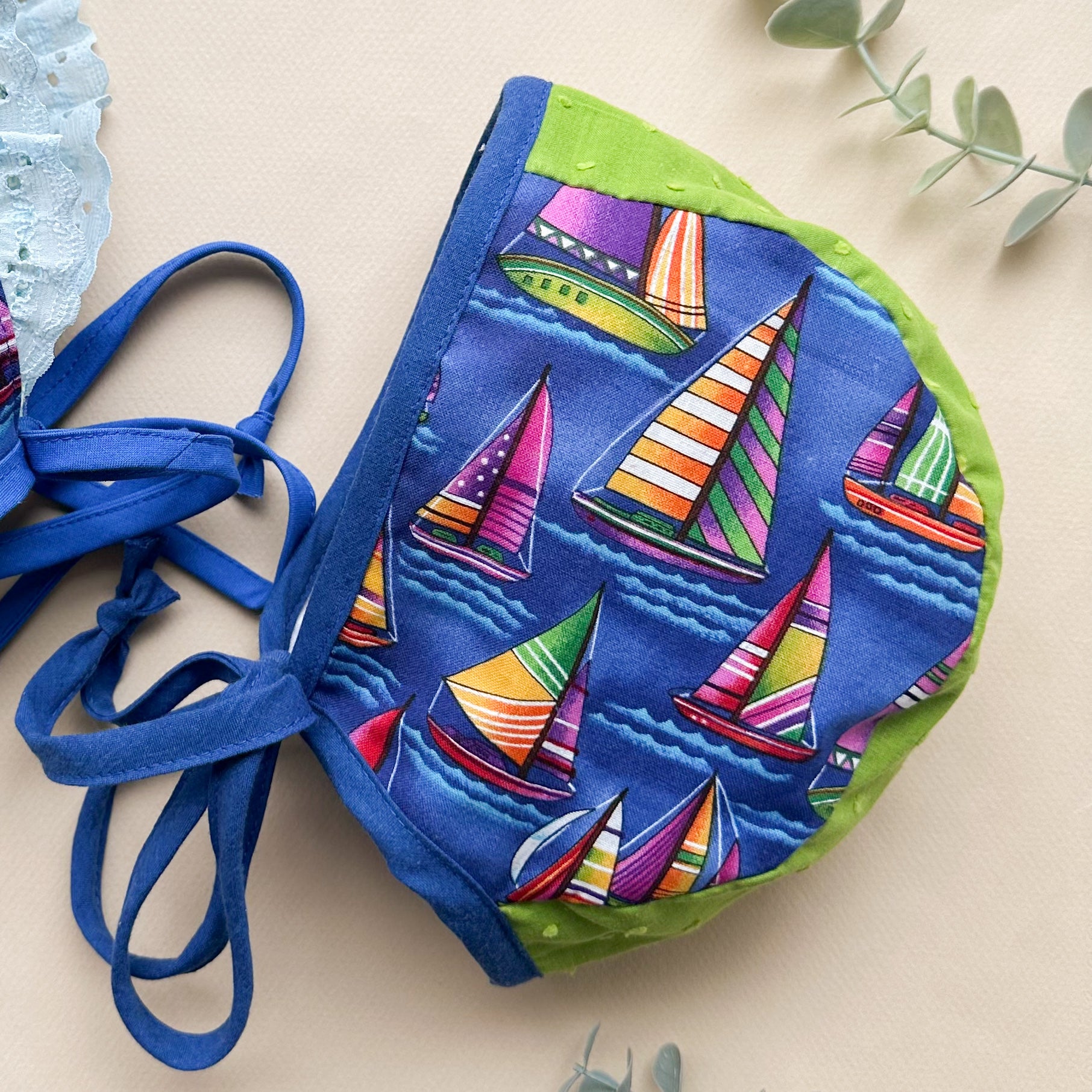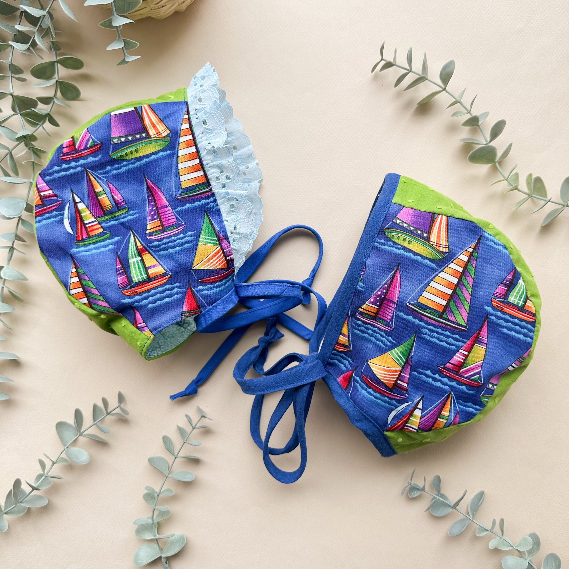 Please keep in mind that the bonnet pictured may not be the exact bonnet you receive. The print, embroidery pattern, and or lace may differ, depending on what part of the textile the bonnet was cut from. Also, colors can change on different screens, I try to photograph the bonnets in natural light to keep the colors as true as possible.