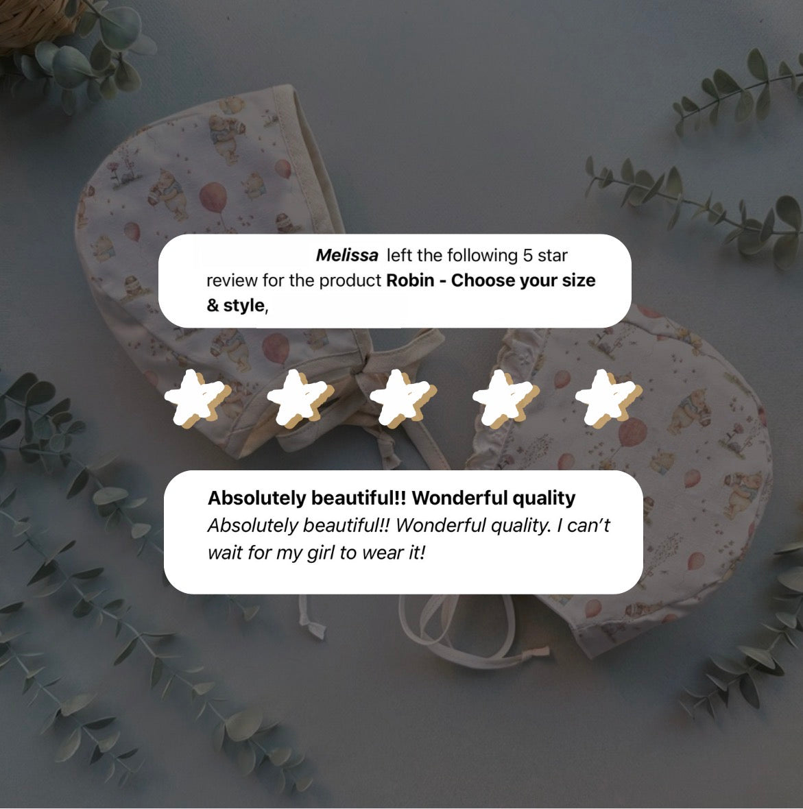 • Questions about shipping, turn-around time, materials, bonnet care or just need to get in touch? Find all that info here