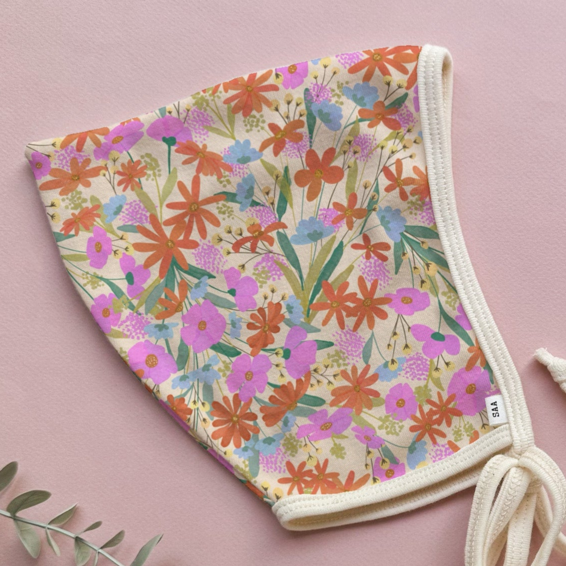Carrie, after painting for over 10 years, has fallen in love with pattern design. This exclusive design was eco -printed on 100% cotton to make this bonnet.